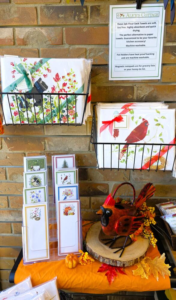 We just got in 2pk Flour Sack Towels with bird and nature designs, Magnetic Notepads, and USA grown Catnip Toys!