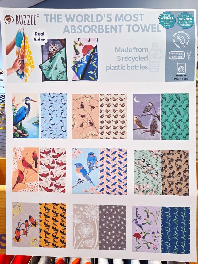 Looking for a more substantial towel that still sports a beautiful bird design? Check out the Buzzee Towels and Foldable Shopping Bags!